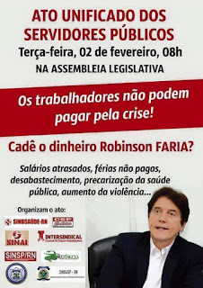 O ano de 2016, inicia-se trazendo atraso de salários dos servidores e com o Governador Robinson Faria, descumprindo a Constituição Estadual.
