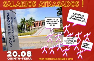 POR SINSP/RN, 15/08/2020 A secretária de comunicação do RN, Guia Dantas, usou suas redes sociais para atirar ironias contra os servidores públicos do estado que exigem o pagamento das folhas atrasadas pelo governo. O deboche com os trabalhadores demonstra, mais que sua função institucional, uma bajulação fiel à amiga governadora. Guia questionou se “dinheiro se brota” e ela própria respondeu que “não”. Verdade, secretária, o servidor sabe bem disso. Cumpre sua função e trabalha penosamente para o Estado e no fim não recebe o mínimo que tem direito, o salário. “Esse não é o caso de uma conta de luz em atraso que no mês seguinte se paga e ok”, afirmou a secretária Guia, na noite de sexta-feira (14) no twitter, enquanto comentava sobre as duas folhas salariais atrasadas ainda não pagas pela gestão que trabalha. Secretária, isso é muito pior que conta de luz, é salário! Salário é obrigação, é prioridade. É com esse dinheiro que o trabalhador paga suas contas atrasadas, coloca comida em sua mesa, bota algo em sua geladeira. Também é com esse dinheiro que se compra medicamentos para sobreviver e que se dá educação para seus filhos. O salário é tudo, Guia. Secretária, quando Fátima resolveu se candidatar sabia de […]