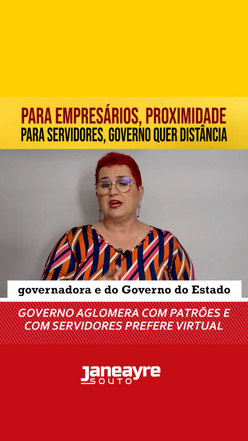 O governo do estado está fazendo uma jogada mais qualquer pessoa que é esperta, percebe logo. A situação está escancarada: para os empresários, as federações dos patrões, a governadora recebe, senta na mesa, causa até aglomeração, agora para receber os servidores do estado através da instancia que os representa que é o Fórum Estadual dos Servidores, não tem agenda e quando tem a reunião tem que ser virtual.